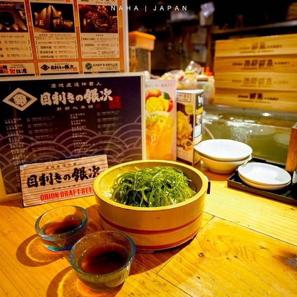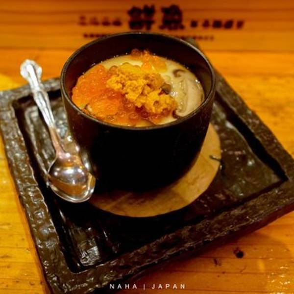看时间差不多,我从商场出发去已经订好的餐厅吃晚饭,路上经过了新都心公园。我挑的这家餐厅是冲绳当地很有名的居酒屋,非常火爆,必须要提前预约,我拜托日本的朋友帮忙打电话预约了位置。在品尝过后必须满分推荐,口味和性价比都是一级棒,店内外装修也非常有特色,是我在冲绳吃得最满意的一餐。目利きの銀次 Mekiki no Ginji 地址:冲绳县那覇市天久1-9-19 营业时间:18:00-次日2:00这里所有海鲜料理都是产地直送,非常新鲜,而且价格也不贵。点了刺身拼盘、酱烧生蚝和配有海胆、鱼子酱的鸡蛋羹,还有梅子酒。实在是太好吃了,虽然已经饱了,可是还有好多想尝试,这就是一个人吃饭的尴尬,点餐受到了很大的局限。但是我最后还是又点了烤土豆、烤鱼,想说哪怕吃不完可以拿回酒店当早餐。后来还被餐厅小哥嘲笑,他特别婉转地问我是不是很饿,因为点了好多,哈哈哈,迷之尴尬!菜单都是日文,还好配上了图片,相对直观,容易理解。实物跟图片还是蛮相符的,来两张菜单照片大家参考一下,如果不知道是什么,服务员也可以简单的英语沟通,我个人认为不用担心会不会点错,感觉每个都挺好吃的,全部可以尝试~心满意足的晚餐也为这美好的一天画上圆满的句号。