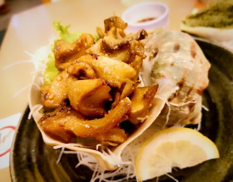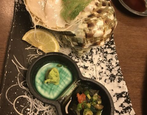 ...和石斑鱼…夜光贝也很好吃…很脆很甘甜~ 有中文菜单~ 老板很会照顾客人…餐后菠萝还有送了贝壳~