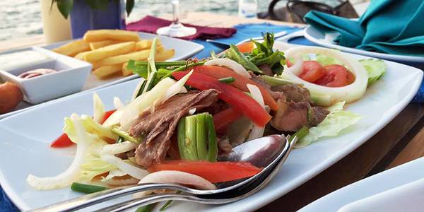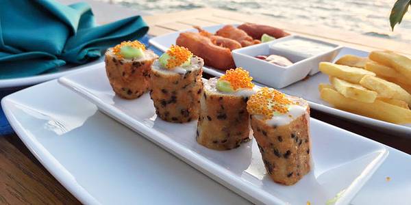 景色一流,一边吃饭一边吹着微微的海风,很舒服,wagyu 汉堡味道很赞,鲜嫩多汁,沙嗲鸡肉很入味,吃起来不是很柴,春卷要搭配酱料,不然真的挺腻