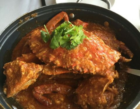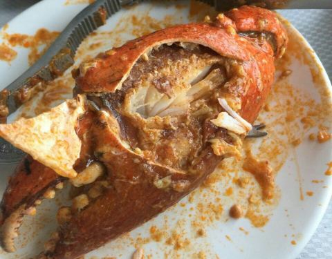 没想到景色这么好的餐厅,价格还便宜,我们在这一家就吃了螃蟹。咖喱螃蟹一份里面有两只,我们两个人刚好一人一只。黑胡椒炒螃蟹,黑胡椒我觉得放的量恰到好处,挺好吃的。