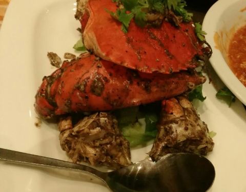 - 推荐他的黑椒炒螃蟹,虽然吃起来比较麻烦,也会弄得手很脏,但是它的黑椒的味道很浓郁,跟螃蟹的蟹肉...