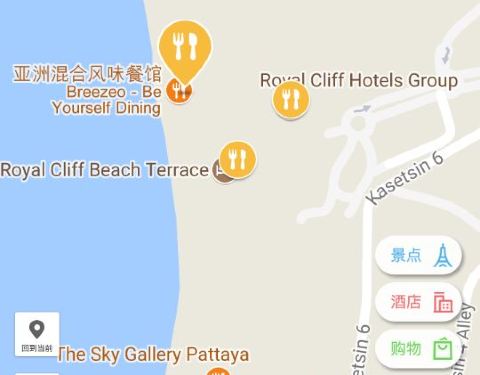 就位在ROYAL CLIFF里的饭店,旁边就是沙滩,海景美丽,夕阳更美,属于西式与泰式改良的餐厅,气氛悠闲,吹着海风用餐很舒服。食物问道还可以,中规中矩。上菜速度有点慢。