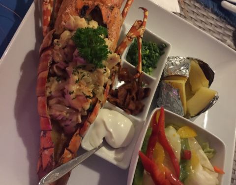 离沙滩很近,在一个不起眼的角落里面,不过味道很不错,也可以看到一点点的海景,三明治很不错,里面的海鲜粉丝很好吃,大虾新鲜。