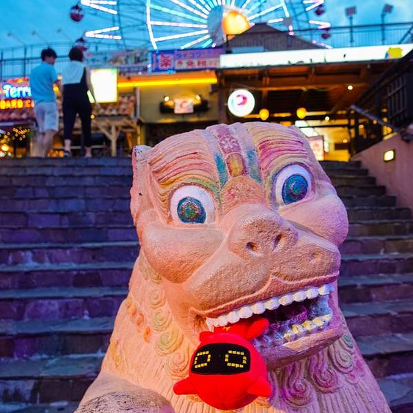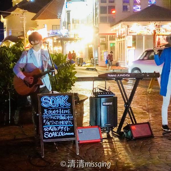 下一个目的地就是美国村的red lobster餐厅了。Red Lobster是很出名的美式海鲜连锁饭店,号称是No.1 Seafood Restaurant。在冲绳有3家分店,分别位于国际通,北谷町和AEONMALL OKINAWA RYCOM这个大商场。 网址:http://www.redlobster.jp/index.html第一次去这家餐厅是15年的时候,当时是小戴带我去的,那次正好碰见店里有客人过生日,店员唱着生日歌并给客人送上了免费的甜品的情景让我觉得十分温馨,然后恰巧那天也是我的生日,于是我也得到了同等的待遇,最后店员还帮我用拍立得拍照留念。龙虾分小,中,大三种,价格分别是4900,6900,8900,挑选好他们会给你确认。龙虾可以选择芝士或者BBQ。海鲜饭也是他们的特色。吃饭的时候全程来了一场直播,都忘记把全部菜品拍一遍了,有兴趣的看我的一直播:@清清missqing,或者27444965。 晚饭后在美国村散步,可能是因为这里聚集了很多美国人,夜晚的美国村比白天更有趣更热闹,跟冲绳北边度假村有着完全不一样的风情,傍晚的凉风调皮地穿过我的发梢,扑向我的怀里又消失无踪,我漫步在异国的街道上聆听着街头驻场温婉的歌声,伴随着音乐的节奏轻轻地跟着打起拍子,让人感觉身心都被这祥和的氛围温柔包裹,放松而愉悦。买联想小新潮7000送的玩偶小新,这次也带着它来旅行了。准备给它来一组冲绳景点打卡。拍小玩具比拍人简单,难怪好多达人每次都带着他们的某个玩偶。一家卖各种小玩意纪念品的店,完全美式风情。门口的雕像很有趣。老公的恶搞。