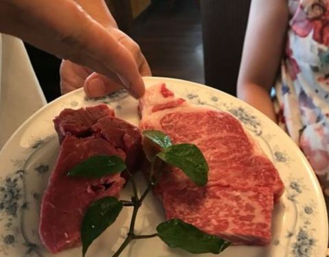非常好的牛排店,就在Cucule酒店斜对面,店面不起眼,主厨是非常讲究的资深师傅,还特地给我们看牛排料理前美丽的油花原貌,顶级A5石垣牛,相比国内的价格,简直是不要钱啊,一家三口一共花了14000多日元。