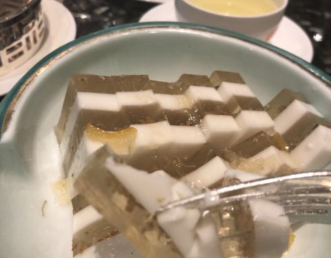 和牛焗南瓜饭,说是要等20分钟,上菜速度也挺快的。不知道川菜馆为什么有这么一道菜,感觉应该是日餐厅的菜品吧。南瓜没有想象的甜。桂花鸳鸯糕很香甜嫩滑,但配了柚子酱有些掩盖桂花的原味的,又甜又苦的味道显得有些杂乱。