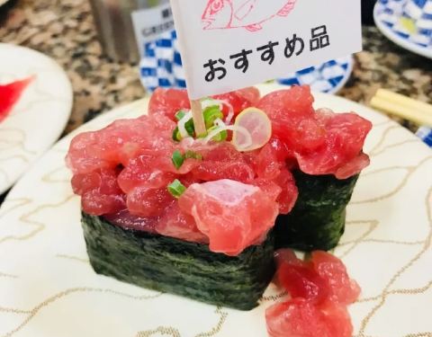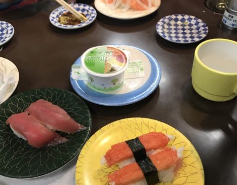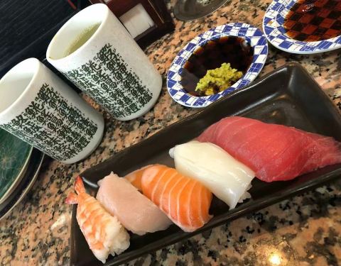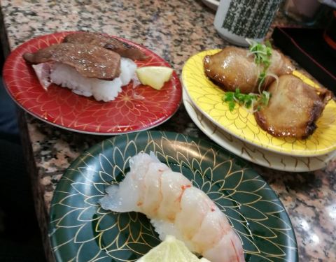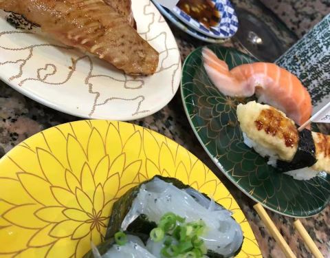 这家店寿司的价格按盘子的颜色区分,有四种颜色。每一种寿司都不负期待,而且都是现场制作,新鲜度就不必说了金枪鱼腹部,背部的鱼肉,入口可以感受到脂肪的甘甜柔美,再配上米饭的紧实,简直是绝配。服务员也非常友爱而且热情,真心推荐!