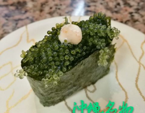 如果想要在冲绳选一家好吃又实惠的寿司店,却又在遍地的美食之间迷失,那大概是因为你还不知道这家店,否则,你一定会别无所求地直奔目标。 不收现金、下午2点多了依然排队叫号,人气火爆的餐厅就是这么不讲理的...如果想要在冲绳选一家好吃又实惠的寿司店,却又在遍地的美食之间迷失,那大概是因为你还不知道这家店,否则,你一定会别无所求地直奔目标。 不收现金、下午2点多了依然排队叫号,人气火爆的餐厅就是这么不讲理的霸气。果断拿号排队,吹着冷气等美食。 餐厅大概3、4个四人位和一圈回转位,总共能坐四十人吧,排在我们前面的有十多个,饥饿的中午每一秒都是煎熬。 不紧不慢的日本人要等到桌子清理干净后过几分钟才会叫客人落座,不知是有特别的讲究还是已经忙不过来了。 规矩和国内一样,寿司等食物按照餐盘颜色的不同区分不同价格,最低的每盘110日元,最贵的每盘360日元,回转餐盘的食物随便取用,另外也可以专门点餐。桌上餐具餐盘酱油芥末抹茶粉餐巾纸一应俱全。 这里最大的亮点莫过于有着四种语言(日中韩英)的点餐PAD。点餐器每人面前都有一个,屏幕简洁易操作,只要在首界面选好语言后面就都易如反掌了,单点的食物很快就会送到客人面前。 已经饿到不行的我们依然保持了冷静——没有取用过多最贵的红色餐盘的寿司,主要以中等价位为主,当然最便宜和最贵的本身也是少数,生怕空空如也的肚子一不留神就伤害了钱包。 这里的所有食物(除了冰淇淋)都是现场制作,没有冰碴制造冰鲜效果,一切都是最原汁原味的口感。厨师们就站在回转餐台中间,每一步操作都清晰可见,绝对吃着放心。 除了各式秀色可餐的寿司,还另外单点了海鲜汤、冰激凌、军舰卷等乱七八糟的一大堆,五颜六色的餐盘餐碗堆起来也有差不多十六七个将近三十厘米高,完全没有控记住我们寄几,就是吃了这么多,当走到收银台结账时,惊讶的发现这一顿竟然才花了2980日元,人均还不到100块,性价比超高有木有!