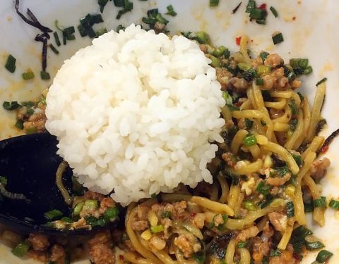 满满一大碗香葱、肉碎、海苔片,再加上温泉蛋,只需12.8新币。 不用担心油拌面会很腻,歌志轩的调料用的是植物油,相对健康一点。再倒上香醋和辣油要拌上20秒,让每根面条均匀地沾上酱汁和浇头。 常规面条分量是140g,胃口好的可以免费加到210g。面条吃的差不多可以再免费加一碗饭,小伙伴们都表示拌饭比拌面更好吃啊!