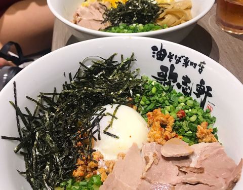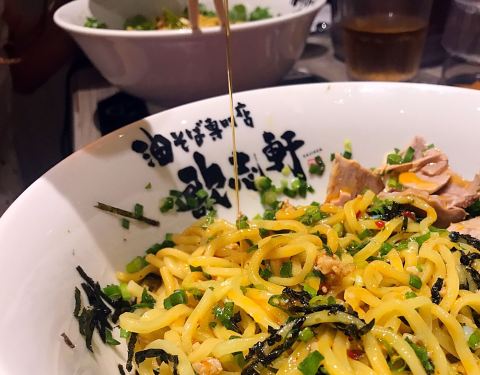 如果拉面没有汤还会好吃吗?会!来自名古屋的歌志轩就专营这种味道全靠酱汁的油拉面。 小葱切得碎碎的,海苔条脆脆的,叉烧不油腻,肉碎特别香,戳破温泉蛋,倒上日式米醋和秘制辣油,拌拌拌出一碗超好吃的面。