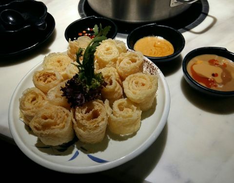炸豆皮喜欢,必点。 牛肉只吃吊龙和嫩肉,这家的还不错,比较嫩。 牛筋很好吃,Q弹有劲道。 牛肉锅贴是个惊喜,肉很紧致,外脆里嫩,鲜美多汁,这个表扬下,有创意。 总体来说不错的潮汕牛肉火锅店,唯一的小遗憾,是没有上海火锅的灵魂-花生酱,虽然正宗的潮汕牛肉锅沾沙茶酱,不过接地气的传统酱料有了更完美。