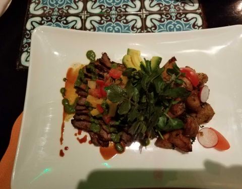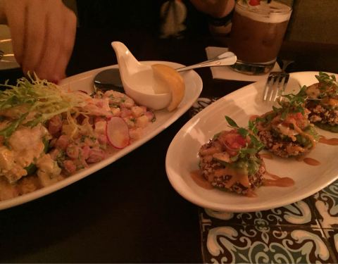 第一次吃墨西哥口味的,土豆片沾牛油果酱非常好吃,大虾卷分量足,很好吃,甜点“被打碎的花盆”造型好看,口味就一般了,我们还点了烤鸡翅,我们就两个人,吃不完这么多啊!