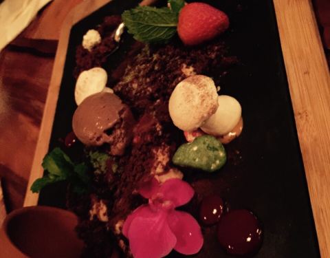土豆片沾牛油果酱非常好吃,大虾卷分量足,很好吃,甜点“被打碎的花盆”造型好看,口味就一般了,我...