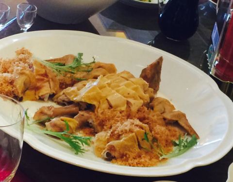 上海口碑本帮菜馆 接地气 可以办大型婚宴 尾牙 菜色中规中矩 『海陆元气锅』整一锅海鲜 青口贝、大虾、鳝背、鱿鱼、蟹、鲍鱼...浓鲜的汤底 称得上这元气的名头 底下的绿豆芽清一色去头去尾 清清爽爽值得大赞 唯独鸭血失色 那口感真是不行 『烤全红鲷鱼配柠檬,百里香和黄油芝麻菜色拉』鱼肉很嫩哦 咸鲜的口感 边上配了色拉 建议少量蘸取还是不错的 丰富味蕾 『法式香菜炖蛋』一坨类似奶油的玩物很奇怪 炖蛋还是可以吃吃的 『掌上明珠』这造型像极了淘宝上热卖的“日本布丁”剖开 内部是杏仁味的馅儿 胶质的口感 般般吧