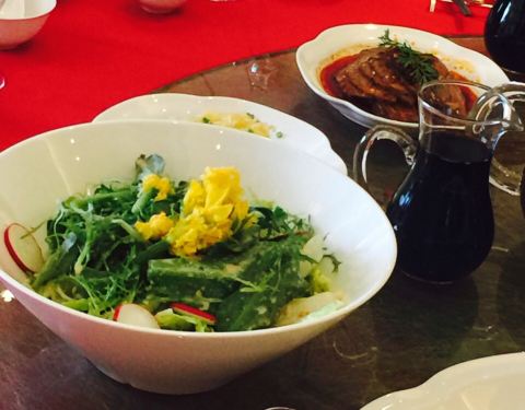 他们家的,蔬菜沙拉跟这个蟹粉还有八月桂花酿汤圆都巨好吃!!!红烧肉还行!