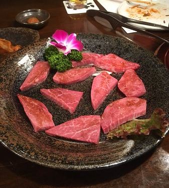 到冲绳第一天就让酒店礼宾定位,定的第二天,好像生意还不错,订不到当天位从新都心打车去的,900多日币好像,司机大叔一看dp上这家门头照片就知道那里,估计本地人也都知道坐电梯上去,在门口等服务生引导安排位置,我们在楼上,要在做电梯上去,都是类似小包间一样,环境和叙叙苑一样,比较昏暗,不过油烟味不重两大两小点了七盆肉,两盆沙拉,还有泡菜豆腐锅,牛尾泡饭,本来以为吃不饱,其实后来吃下来刚好肉问服务员要日文菜单,上面才有石垣牛我们点了A5最贵的厚切霜降牛里脊?石垣牛,和普通的牛都点了,A5油花,那口感真的,服务员说这个比较fresh,所以时间要很短,基本十秒内就可以了,牛腰肉挺好吃,图片白色块是点的牛小肠,口感里面软软的,吃起来有点油沙拉很好吃,额外送了醋物,海藻类的牛尾泡饭也不错,炖的蛮烂的,吃的肉油了过过嘴不错吃完买单3万多日币,其中包厢费500一人好像,还有服务费,比预想的要便宜一点<br /> <br /> <br /> 去冲绳一定要去尝试的一家牛肉店 前菜 牛肉 牛舌 甜品都可圈可点 就是价格偏高 分量偏少当天去的时候已经没有位子 于是预约了第二天晚上的 这家店有两层 还有个美女服务员姐姐今天整理照片的时候看到的 离吃的时间有点远了 具体的牛肉名字已经基本上忘记了 记得前菜类似蕨粉的在这家店很好吃 别的店的味道调不出 主食肉类 每样都很好 入口即化 我们点了四份肉也完全没有吃满足 可惜价格太贵 餐后甜品是香草冰激凌 浇上配套的抹茶酱 非常美味还是值得推荐的一家店!