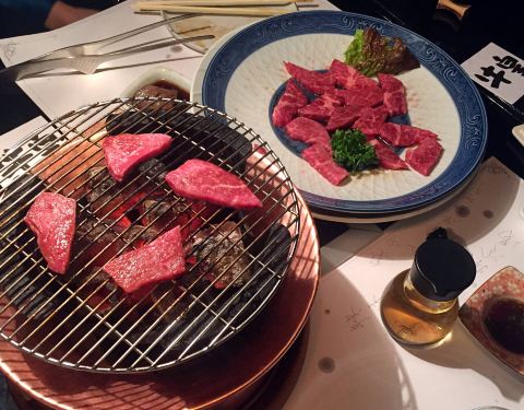 石垣牛肉质好,价格高,还有日本現在数一数二的清酒-森伊藏。基本上沒订位,現场不管再早去,服务员都会说本日全部客满。所以,还是订位吧