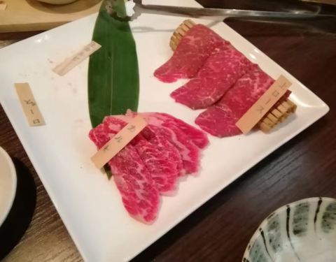 到冲绳第一天就让酒店礼宾定位,定的第二天,好像生意还不错,订不到当天位从新都心打车去的,900多日币好像,司机大叔一看dp上这家门头照片就知道那里,估计本地人也都知道坐电梯上去,在门口等服务生引导安排位...到冲绳第一天就让酒店礼宾定位,定的第二天,好像生意还不错,订不到当天位从新都心打车去的,900多日币好像,司机大叔一看dp上这家门头照片就知道那里,估计本地人也都知道坐电梯上去,在门口等服务生引导安排位置,我们在楼上,要在做电梯上去,都是类似小包间一样,环境和叙叙苑一样,比较昏暗,不过油烟味不重两大两小点了七盆肉,两盆沙拉,还有泡菜豆腐锅,牛尾泡饭,本来以为吃不饱,其实后来吃下来刚好肉问服务员要日文菜单,上面才有石垣牛我们点了A5最贵的厚切霜降牛里脊?石垣牛,和普通的牛都点了,A5油花,那口感真的,服务员说这个比较fresh,所以时间要很短,基本十秒内就可以了,牛腰肉挺好吃,图片白色块是点的牛小肠,口感里面软软的,吃起来有点油沙拉很好吃,额外送了醋物,海藻类的牛尾泡饭也不错,炖的蛮烂的,吃的肉油了过过嘴不错吃完买单3万多日币,其中包厢费500一人好像,还有服务费,比预想的要便宜一点<br /> <br /> <br /> 去冲绳一定要去尝试的一家牛肉店 前菜 牛肉 牛舌 甜品都可圈可点 就是价格偏高 分量偏少当天去的时候已经没有位子 于是预约了第二天晚上的 这家店有两层 还有个美女服务员姐姐今天整理照片的时候看到的 离吃的时间有点远了 具体的牛肉名字已经基本上忘记了 记得前菜类似蕨粉的在这家店很好吃 别的店的味道调不出 主食肉类 每样都很好 入口即化 我们点了四份肉也完全没有吃满足 可惜价格太贵 餐后甜品是香草冰激凌 浇上配套的抹茶酱 非常美味还是值得推荐的一家店!