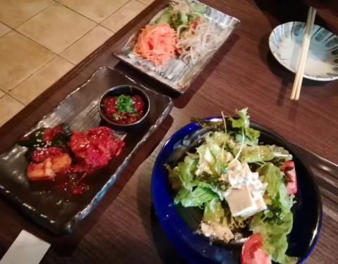 - 吃起来有点油沙拉很好吃,额外送了醋物,海藻类的牛尾泡饭也不错,炖的蛮烂的,吃的肉油了过过嘴不错...