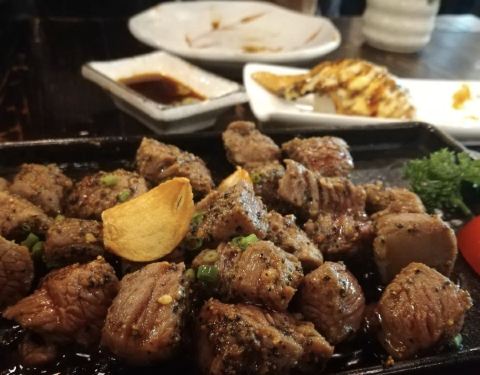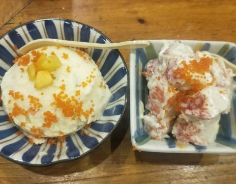 一家很火的日料店,排队时间很长。雪山富豪土豆沙拉,土豆沙拉细腻,沙拉酱和土豆泥融合的很好,铁板一口牛肉,很嫩滑,小块牛肉粒入味,黑椒很香。