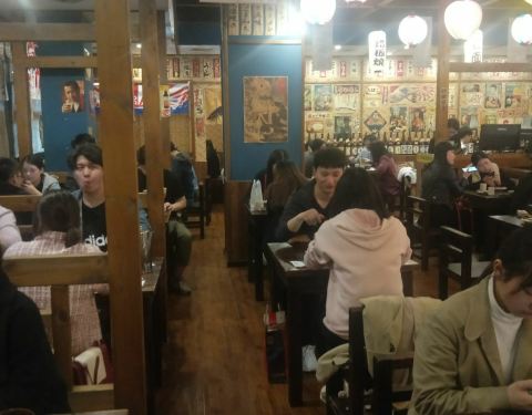 餐厅位于街道口新世界百货附近,店面很隐蔽,要仔细找。店内是典型日式居酒屋的装潢,最里面是三个榻榻米式的小包厢,右手边是一个小吧台,左手边紧凑地摆着几张小桌椅。用餐高峰时期人很多,需要等位。菜品都是各种经典的日式料理,很精致且价格很实惠。