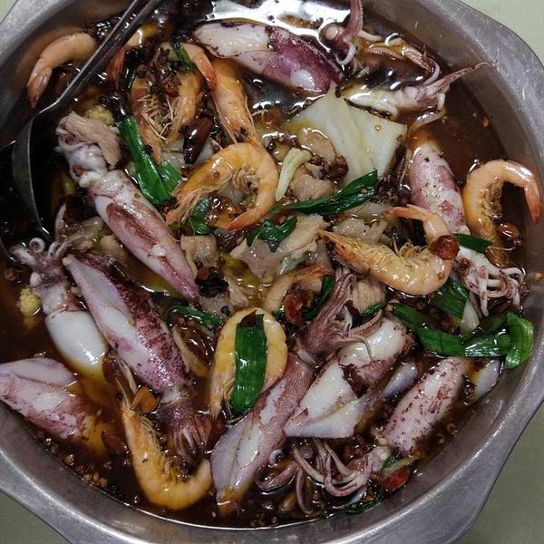 - ...水煮海鲜,一大脸盆大的食盘:海虾、小章干(鱿鱼)红烧杂鱼,茶树菇炖猪肚⋯⋯都是鲜美无比的特色菜