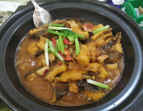 慕名前来,专门来吃这个水煮海鲜,一大脸盆大的食盘:海虾、小章干(鱿鱼),红烧杂鱼,茶树菇炖猪肚⋯⋯都是鲜美无比的特色菜,