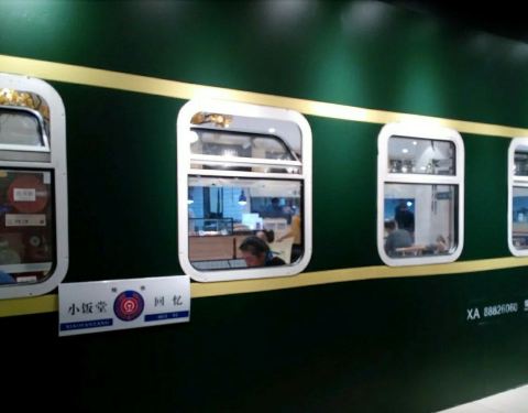一,环境: 之所以先说环境,因为这家营造的是火车快餐店的理念。首先,整个外观是与火车车箱的造型相同。其次,入口也是按上火车时几号车箱的形式。第三,桌椅摆放更是按照标准火车座位的形式,因此,就环境来讲,富有特色。 二,口味: 有长安的小吃,做的较细致。价格略贵。还有一个售西点面包的柜台。 三,服务: 还是不错的。