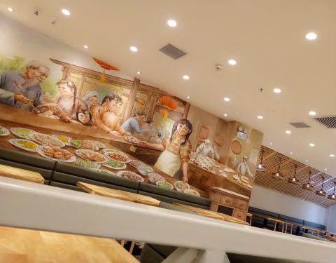 长安大牌档餐饮旗下的品牌,这家就在市中心新世界百货的三楼。这里采用的是排队取餐式,有很多在附近的上班族会把这里当做吃工作餐的地方。菜品挺丰富,价格也实惠,种类有陕菜,也有一些酸菜鱼、麻婆豆腐类的常规菜。餐厅的装修有些意思,采用了火车车厢内的装饰,椅子凳子和窗户都是火车上的样子。