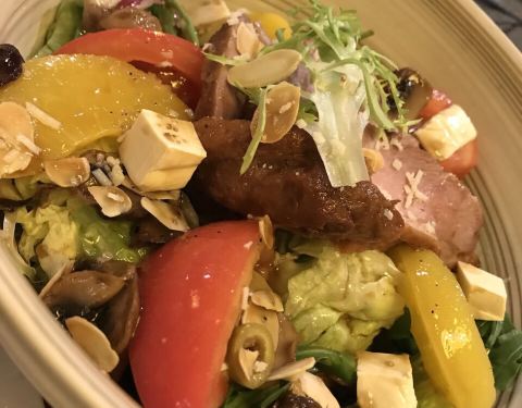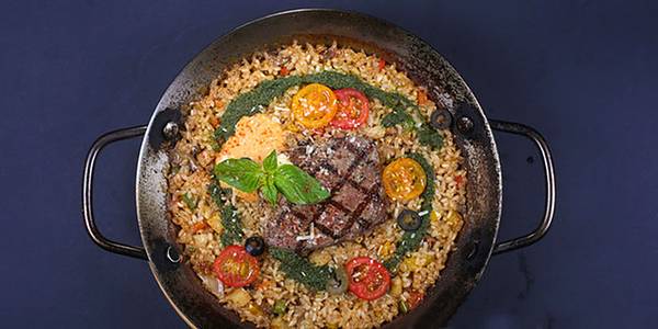 工作日中午和小伙伴相约吃午餐。搜了下离公司较近的餐厅,不约而同选了这家。点评上有99元/2人的午市套餐,性价比满高的。 【环境】有两层,西班牙的装修风格。 【罗勒牛排海鲜饭】口味不错,饭的软硬程度正好。 【芝士蜜桃鸭胸色拉】量超大,鸭肉很嫩,还配有黄桃、番茄、无花果等蔬菜。 【饮料】和小伙伴都选了鲜榨果汁,苹果+胡萝卜的搭配,口味不错,连不吃胡萝卜的小伙伴都很爱。