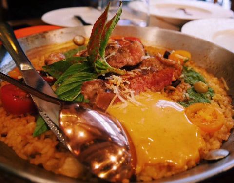 位置不太容易找,餐厅的房顶很高,套餐性价比很高,海鲜饭可是墙裂推荐的,份量太,配料也多,热气腾腾的,十分入味,烤鸡配苹果派好丰富,毫无抵抗力的吸引,蛋饼就是松软,香喷喷的,口感很滑,服务很棒,推荐...位置不太容易找,餐厅的房顶很高,套餐性价比很高,海鲜饭可是墙裂推荐的,份量太,配料也多,热气腾腾的,十分入味,烤鸡配苹果派好丰富,毫无抵抗力的吸引,蛋饼就是松软,香喷喷的,口感很滑,服务很棒,推荐的都很喜欢。
