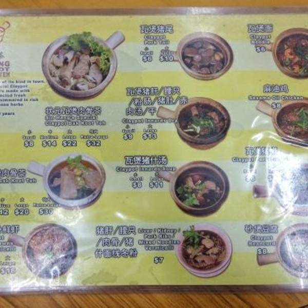 Sin Heng Claypot Bak Koot Teh的特色肉骨茶独特之处在于其添加了10种中药和香料,除此之外食客还可以要求添加其他食材,如鲍鱼。餐厅不仅提供肉骨茶,还供应其他中国菜,可以一试。