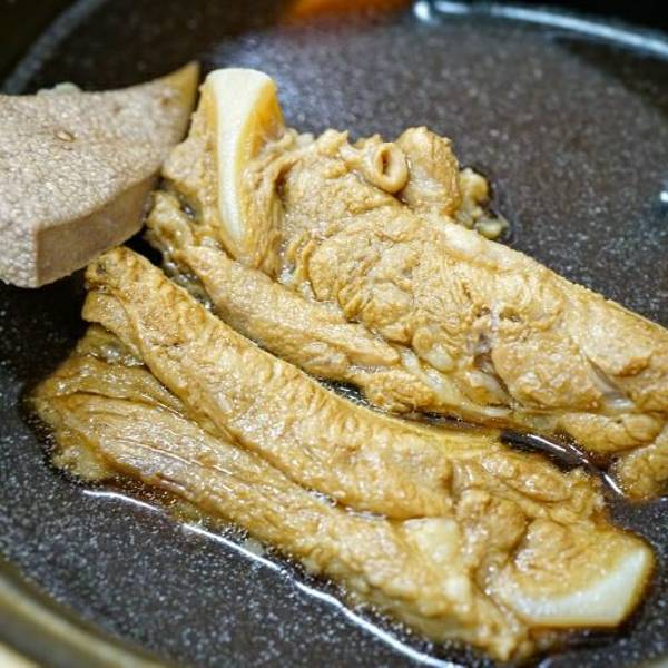 不知道她们家算不算是衍生的派别~ 感觉是福建派吸收了部分潮州派技法,换做瓦煲烹制,还加入了一大推的生菜、木耳、小玉米之类的素菜~ 整体酱油的咸味相对明显,香料及药材味弱,黑胡椒味明显,带着微微的苦甜之味,算不得差,也没有很好,较为普通吧~ 不过油条是他们的致命点,回潮不说,吸收了汤汁之后的油条,咸味更胜了,算是没处理好吧,油条就不要加了~