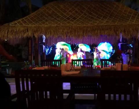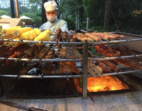 很有情调的露天烧烤BBQ自助餐,菜品新鲜丰富,还有免费啤酒饮料。在露天花园里用餐,边吃边欣赏菲律宾乐队的现场SHOW,演出为自助餐增色不少。烧烤类很赞,不用自己排队等待,会有风趣的烧烤大叔会将各类肉烤送到你餐桌前。