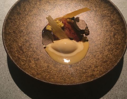米其林一星法餐实现了在日本吃法餐的小愿望! 餐厅在目黑川边的二楼,望向窗外,北边的樱花已经凋落,满目郁郁葱葱。 每次吃高级料理都会语无伦次,因为完全超出见识范围,每一口都是惊喜! 这家餐厅的菜品灵感来自大自然,比如甜品的造型是亚马逊丛林。同时融合了各国特色:前菜是十分日本特色的海胆+和牛+生蚝+酱油啫喱,极致的鲜美;还有墨西哥的taco小卷饼、中国的粽子…我最喜欢的菜是用白色盘子装的鱼:鱼皮酥脆,酱汁用了葡萄酒和姜蒜,把粽子和酱汁搅拌均匀…意犹未尽! 一顿两小时的午餐,加上预约费和饮料大约是13000一人。
