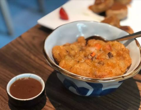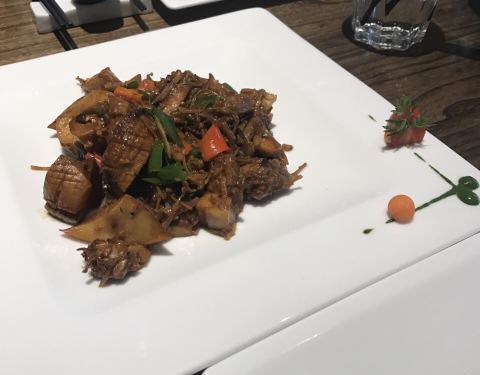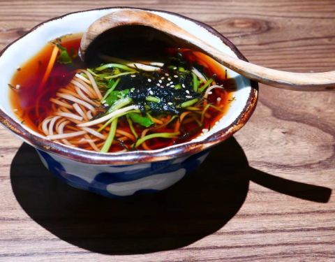苏州排名第一的素菜馆,食材高档新鲜有营养。环境雅致,口味融合,适合大众口味。大伊点了三个菜,无独有藕,野生菌汤,野菜荞麦面,结果有点吃不掉,只怪一个人胃口不大又想替大家多尝几道菜藤椒的麻渗透到酥酥的藕块里,伴随苏州偏甜的酱香入口美味。野生菌本不用过多的修饰,荞麦面Q弹。大伊本是个肉食主义者,但也觉得素菜能这么好吃也是一种新体验。给好评哟