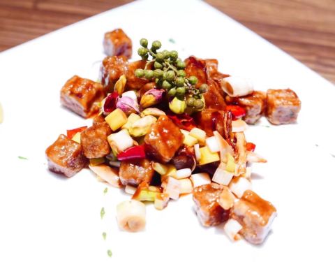 价格不便宜,但是绝对是我吃过的素菜里可以排前三。造型上绝对不是传统素菜馆能做到的,每道都是件工艺品。口味上也比枣子树好吃。强推夫妻肺片和炸素排。