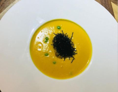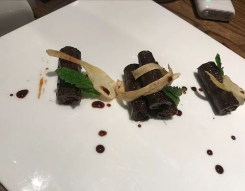 一家很重视美学的素食餐厅。菜名很有诗意,iPad菜单上能看到每道菜品的简介和所用食材,推荐菜“卷珠帘”选用海藻做食材,用芥末口味的特调酱汁作蘸料,清新爽口。