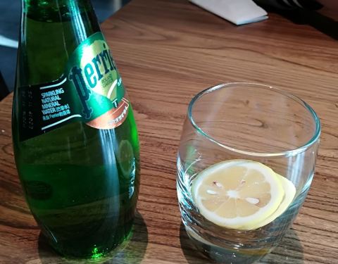 在诚品书店逛累了正好可以来对面的这家店坐坐,算是喝下午茶吧,点了一杯鲜橙汁,贵是贵,但是真的是鲜榨的,还带点酸味,可以接受。巴黎水配柠檬,又养身又解渴。彩虹甜点非常好吃,说是各种颜色都是纯天然的食物做的,上面还有一个小小的马卡龙蛋糕,吃完很有满足感。