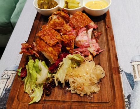- 菜品,说实话,很一般,我们要的288的套餐,肘子肉很明显是提前做好的,加热一下就上桌了,皮很硬