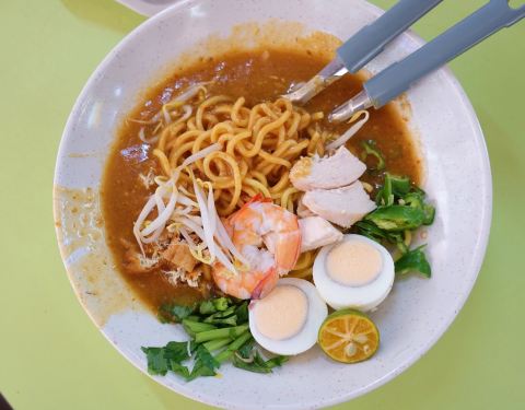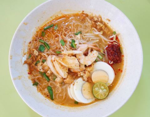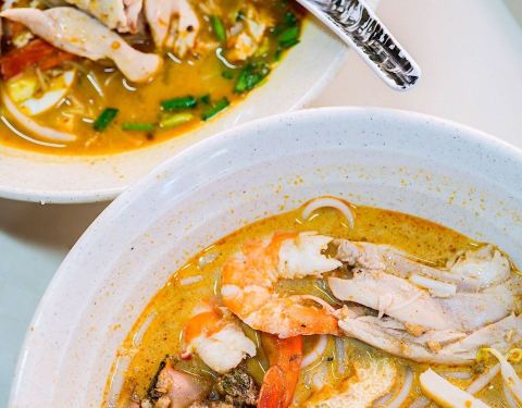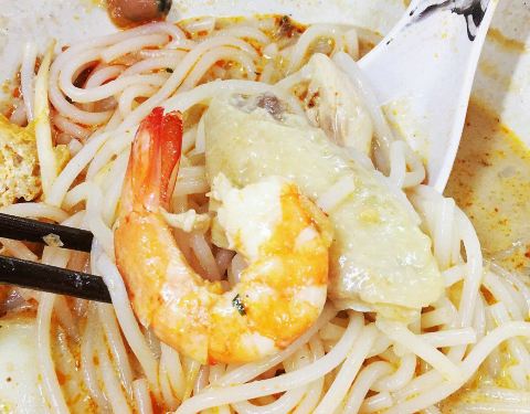 新加坡最好吃的叻沙之一 完全不输328加东叻沙哈!虽然在芳林巴刹 但中午也是大排长队 颇有人气。店面贴满了各种媒体报道和奖项 厉害了厉害了! 虽然店里很忙 但服务却一点不高傲。 做叻沙的爷爷和负责点单的奶奶 始终很亲切 耐心的询问你要加什么配料 吃不吃葱花什么的。 看我要拍照 还热心的把出品摆的特别好看 好窝心 2️⃣3️⃣4️⃣叻沙 他家叻沙椰奶味比较浓郁 汤底偏奶白色 虾酱的鲜辣比较淡。整体很浓醇啊 每一口汤都够味! 配料无比丰富 切好的鸡肉 虾仁 豆芽 鱼饼 油豆腐 甚至还有血蛤肉!性价比不能更高了。。 加了琵琶虾 又名本地龙虾 虾肉鲜嫩弹牙 好次! 米粉是粗粗的那种 很有嚼劲。 这款叻沙很适合不能吃辣的小伙伴 再也不用抱怨328太辣了哈哈 5️⃣6️⃣果汁米暹 这个也是他家特色 加了果汁的细米粉 比招牌的叻沙还好吃啊!!汤底有酸酸甜甜的果汁味 很清爽 细细的米粉口感爽滑 太适合新加坡这样的夏天气候 配料如上 无比丰富+1 7️⃣8️⃣马来卤面 精华在于卤汁 他家做的很棒 够稠够浓郁 每根面条都能裹上满满的汁!酱汁鲜美带点甜味 一定要搭配脆脆的青辣椒才是最地道的口味 配料如上 无比丰富+2 把他家菜品全点了一遍。。 每一碗都是一个价格:小份3/中份4/大份5 +琵琶虾8块 一个人吃了三碗米粉面 可把自己牛逼坏了♀️ 强烈推荐游客去打卡!!!