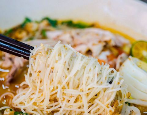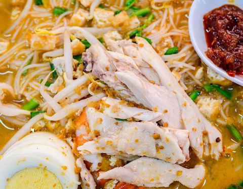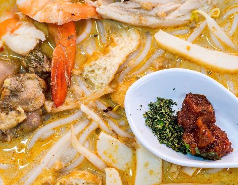 驰名结霜桥三轮车叻沙位于牛车水的芳林巴刹熟食中心。据餐厅老板介绍,他每天开门前都会花两个小时加足贝干和虾干用炭火熬汤底,然后卖完就打烊。这家的叻沙是汤底中有椰奶,椰香浓郁,只要喝一口就知道里面的材料有多丰富。最重要的是料足,价格还不贵,性价比超高的一家店。