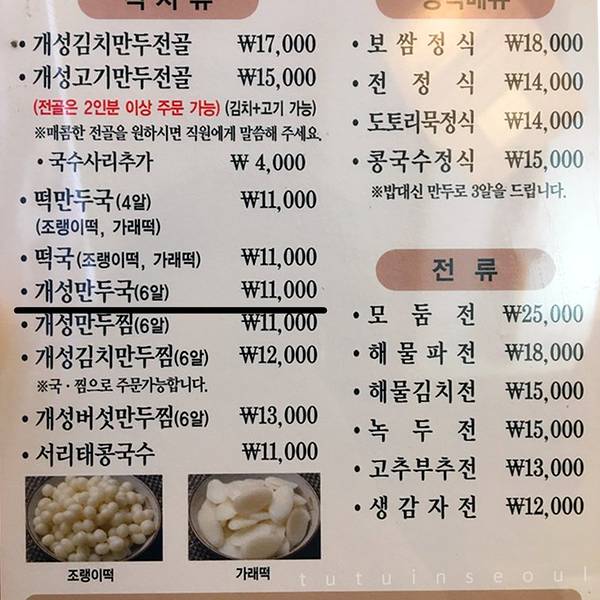 HOW MUCH:11000韩元宫开城饺子仁寺洞划线部分就是我点的。另外这家店可打包生饺子带走~宫开城饺子仁寺洞这位应该是传承人,从我进店到吃完离开,她一直坐在属于她的领地。宫开城饺子仁寺洞这幅图片应该是一代创始人奶奶和二代继承人。宫开城饺子仁寺洞我是10点半到店,刚过11点,已经开始排队。真的想试试,就提早前往吧~宫开城饺子仁寺洞