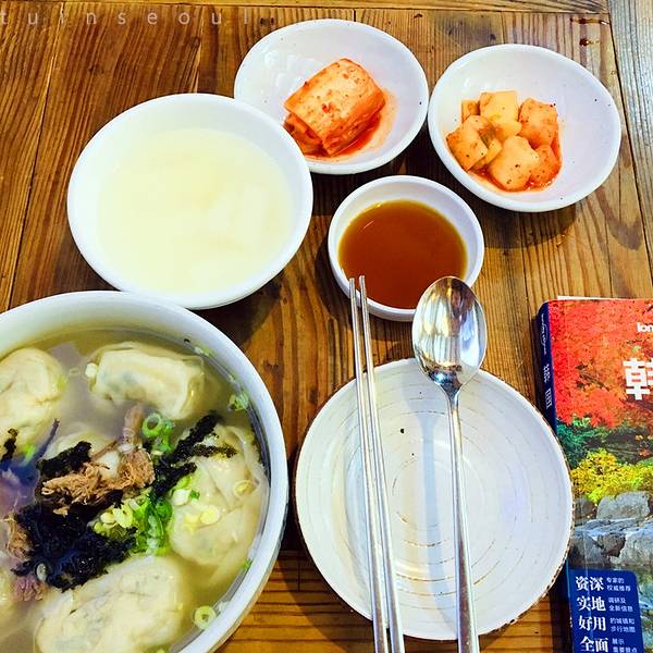 店铺位于仁寺洞传统韩屋建筑中,古朴自然。韩国的王饺子大小跟中国的小笼包相似,一碗四个,饺子汤淳朴、自然的味道令人印象深刻,不愧是老字号。