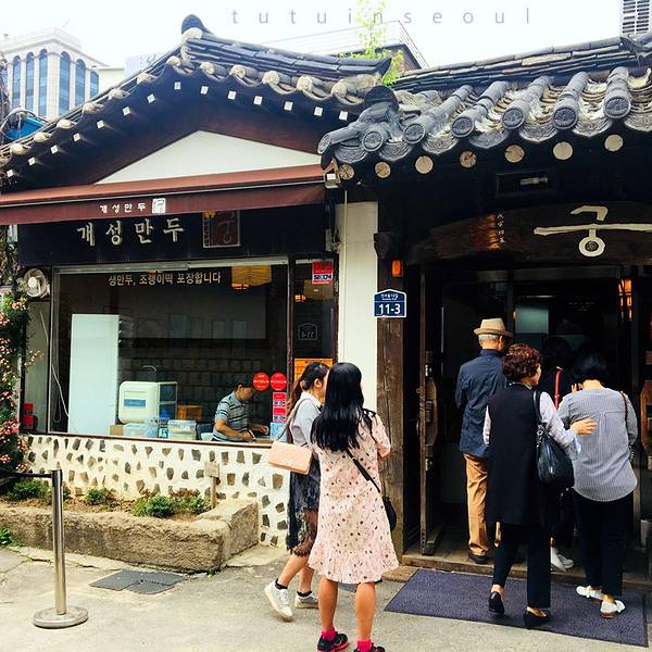 开城饺子店-宫!据说这家名为“宫 ”的饺子店,是韩国战争时避难到韩国的店家的祖母开设的开城饺子店。饺子店名声在外,去的晚了有时都没得吃。招牌菜有开城饺子火锅、年糕饺子汤。三四时饺子火锅最理想。这里的饺子个大馅足,饺子个头像拳头大小相当,一个饺子常常多咬几口才能吃完都是每天现做,饺子馅里加入了新鲜的豆芽、白菜营养丰富!这里的饺子汤和年糕汤的味道也不错哦~位置就在首尔市钟路区仁寺洞10街!超级推荐!