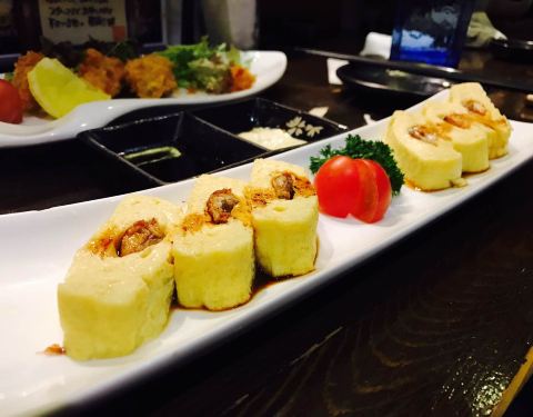 嘛…微妙…抱着很大的希望来的却得到这样的结果_(:з」∠)_首先点的鸡肉丸子(酱),蒜香肥肠,煮海螺。赠送了毛豆,很棒!毛豆的还保留着有咬劲的口感,咸味也正好,让人一口接一口停不下来,火候相当不错!肥肠也是外酥里嫩完全没有脏气味,外酥里嫩还配上了炒好的蒜瓣,鸡肉丸子肉汁很足,最惊艳的是煮海螺,腥味去得干净,而且不老,弹性十足让人愉悦…于是又追加了紫薯奶酪卷和黄油炒鱿鱼肝(注意这个名字)接下来问题来了…_(:з」∠)_两道菜都上错了…奶酪卷变成了蛋卷…这道及时换了…鱿鱼肝变成了鱿鱼…………可惜后来心好累就算了2333π_π新上的紫薯春卷也许是因为着急…火候差了一些…馅是温的!是温的啊…奶酪还是咸咸一坨完全没化开…更可怕的是Σ(・ω・ノ)ノ皮还有部分是软的没熟啊…咿…这是推荐菜……?接下来变身成鱿鱼的鱿鱼肝…不…应该说已经变成鱿鱼肝了…好老…而且好咸…换厨师了?之前完美的调味和火候呢…还有最后那一丝腥味…有点明白为什么会那么咸了…_(:з」∠)_下面那坨配菜……已经真的炒成一坨了…总之…有好有坏吧…气氛还是不错的…微妙…