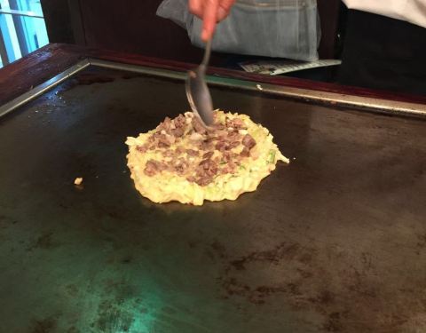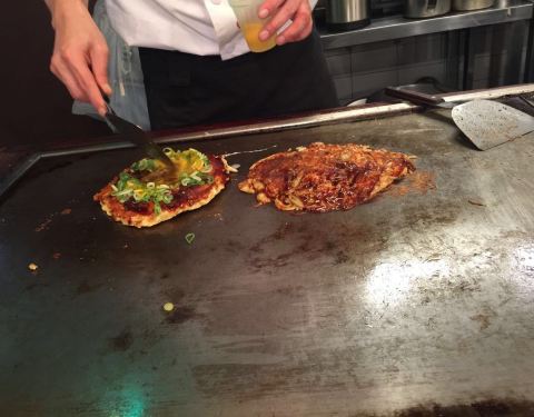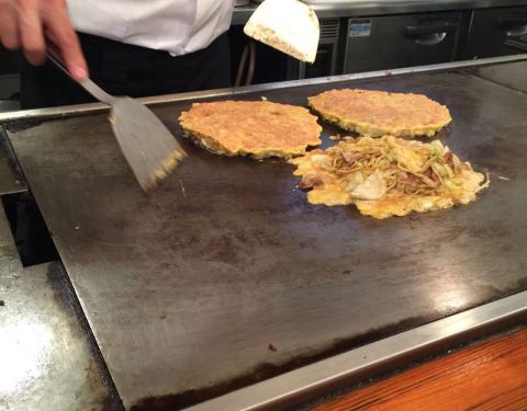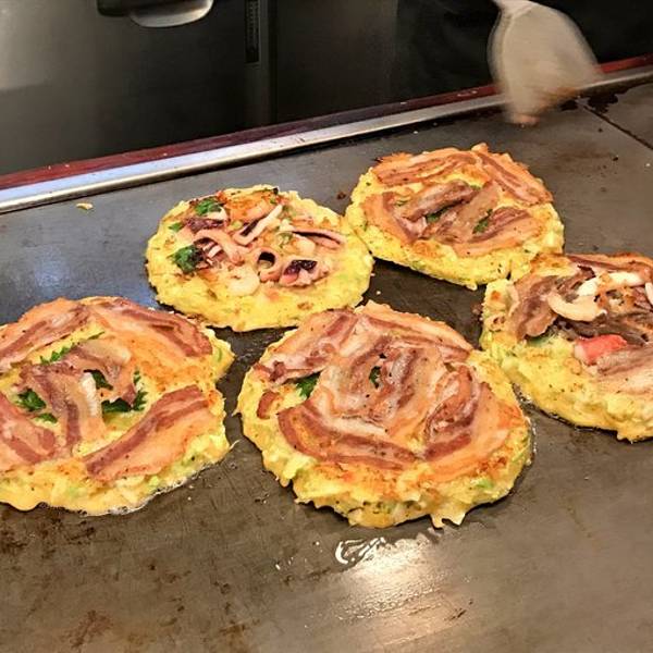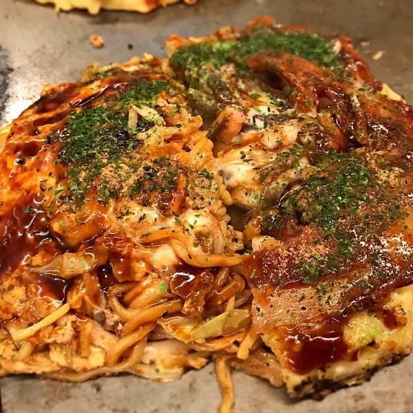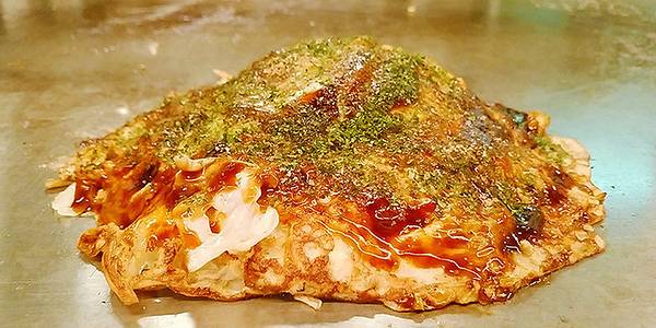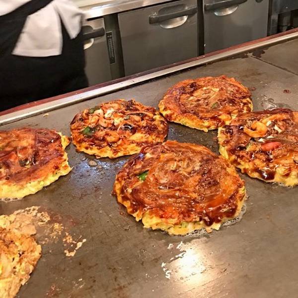 大阪烧可以说是大阪面食文化的代表,这种日式蔬菜煎饼,十分物美价廉,Okonomiyakikiji在此基础上改良,添加了五花肉、牛肉等,为食客又添了一份选择,每次去都吃好几份,配上一杯酒最是惬意。