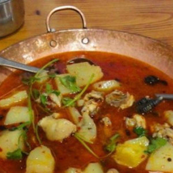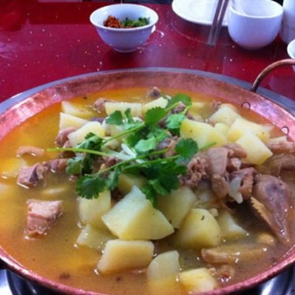 在象山市场东300米处,材料用的是丽江本地太安的洋芋,洋芋就是外地人说的土豆,这种洋芋口感松软粉糯,放在丽江本地土鸡做成的火锅中确实很好吃,鸡肉鲜香,洋芋沙沙的很入味。用餐环境:大排档。