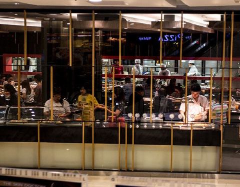 泰国的自助火锅餐厅,在泰国有多家分店,这家餐厅位于Central World,锅底的选择性很多,还有转盘式的回转寿司可以自助取用。