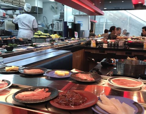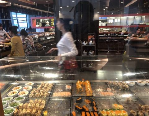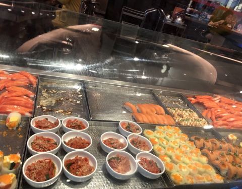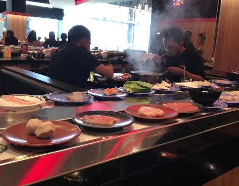 - 日式自助餐,有寿司,关东煮,还有旋转火锅